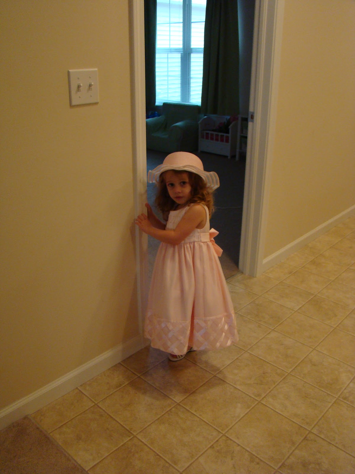 The only picture I could get of the whole dress was when she didn't realize I was taking a picture. . . I hope this "no picture" phase passes soon!